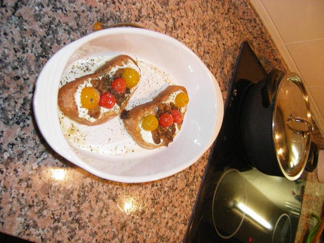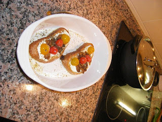 De entrada comemos um queijo caprese “Palhais” (passe a publicidade, mas este queijinho é bem saboroso) e pão feito na MFP (que agora que aprendi a usar o temporizador não quero outra coisa. Desta vez foi pão rústico, com farinha da “Nacional”, passe a publicidade mais uma vez, que é, do nosso ponto de vista a melhor).